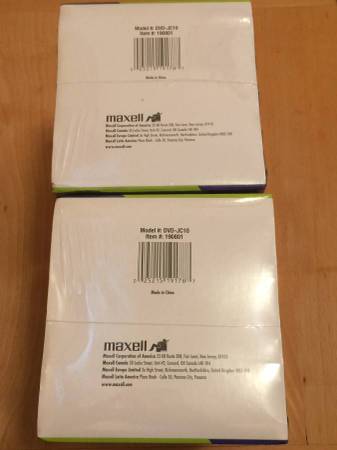 2 - 10-pk Maxell DVD Storage Boxes Model #: DVD-JC10 Item #: 190801 Brand NEW in original shrink wrap With outer transparent sleeve for title insert Heavy duty durable construction Easy release hub...