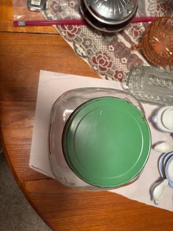 Vintage Anchor Hocking gallon Hoosier glass jar with original green lid. Likely 1930s or 40s. $15